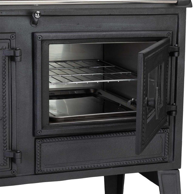 Gefertigt aus massivem Gusseisen, vereint dieser Holzherd zuverlässige Heizleistung mit vielseitiger Kochfunktion. Mit 7 kW Nennwärmeleistung beheizt er Räume bis zu 165 m³ und überzeugt durch einen stabilen Wirkungsgrad von 76 %.